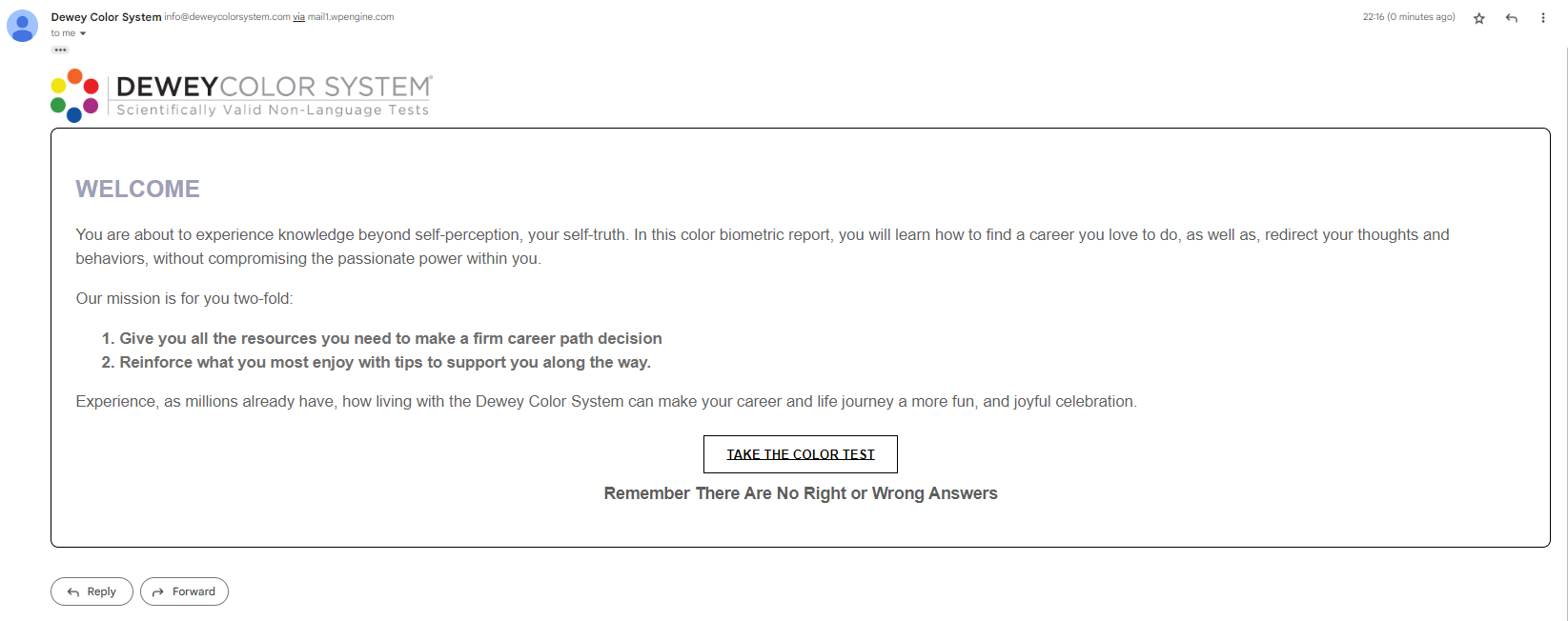 Student will be sent an email with an embedded test link to the "Top 50 Most Enjovable Careers" and "Success Driven Coaching". Click here to view the email.