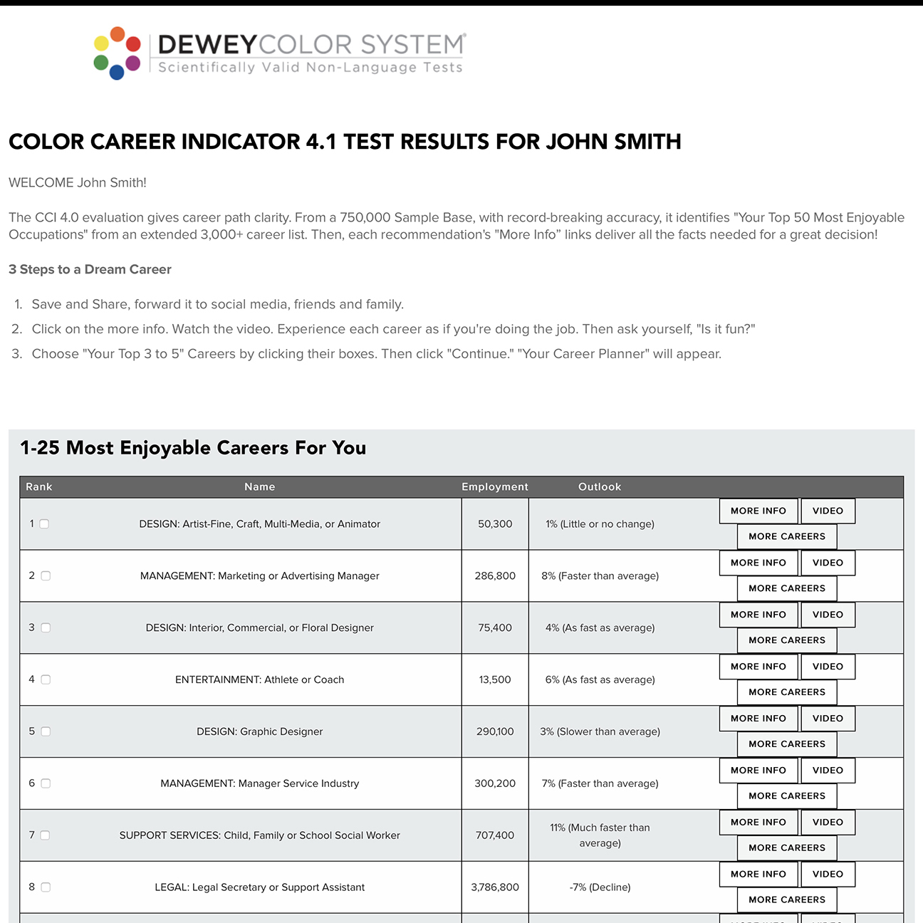 After submitting your test, you will receive an email with a link to your personalized results. The image below is an example of what you will receive.