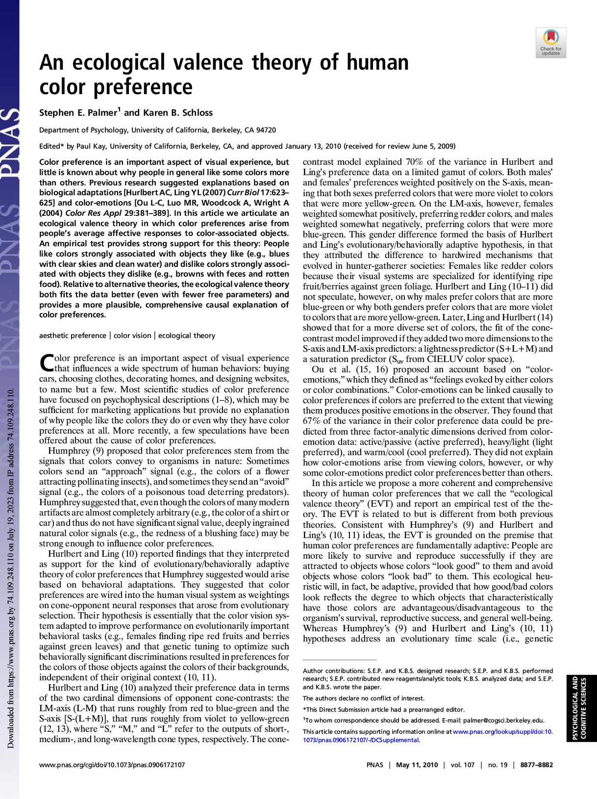 Stephen E. Palmer and Karen B. Schloss